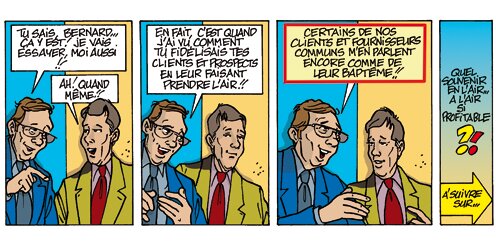 - Bien, d’abord le rendez-vous au Bourget à l’heure choisie avec 5 clients, 5 prospects et mes commerciaux.